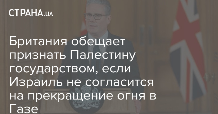 За його словами, Британія визнає державу Палестина до Генасамблеї ООН, "якщо ізраїльський уряд не зробить суттєвих кроків, щоб покласти край жахливій ситуації в Газі, не припинить вогонь, не дасть зрозуміти, що анексії Західного берега не буде і не візьме на себе зобов'язання щодо довгострокового мирного процесу, який забезпечить рішення на основі двох держав".