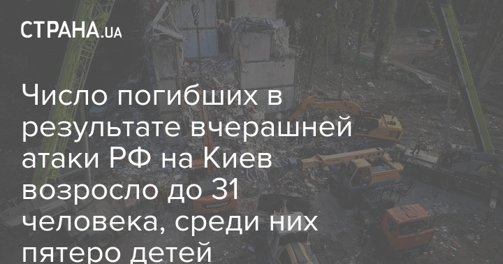 Число загиблих внаслідок вчорашньої атаки РФ по Києву зросло до 31 особи, серед них п'ятеро дітей