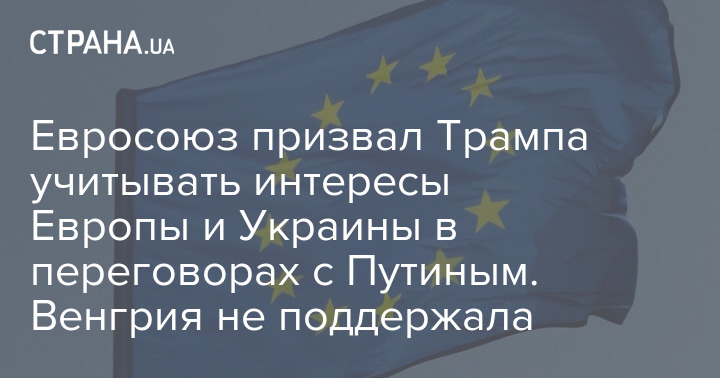 Євросоюз закликав Трампа враховувати інтереси Європи та України у переговорах із Путіним. Угорщина не підтримала