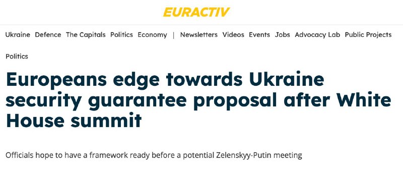 "На даний момент досягнуто широкого консенсусу з приводу гарантій безпеки, який включає три елементи: добре оснащені та збройні українські збройні сили без обмежень за чисельністю, багатонаціональні сили забезпечення безпеки після припинення вогню та певна форма підтримки з боку Вашингтона, хоча масштаби участі США залишаються неясними. Лідери ЄС також висловили широку підтримку зобов'язанням у стилі НАТО – захисним заходам, аналогічним статті 5 статуту, як їх все частіше називають офіційними особами США. Хоча це і посилання на пункт НАТО про взаємну оборону, рівень захисту залишається значною мірою неясним", - пише Euractiv.