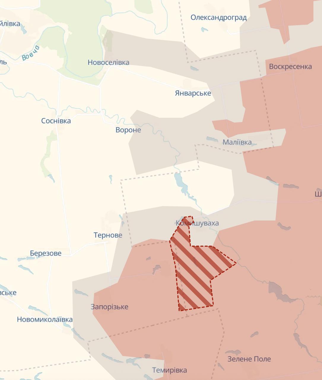 Судячи з карти, сіра зона біля Новоселівки не зменшилася, проте ліквідовано невелику ділянку, де росіяни раніше закріпилися.