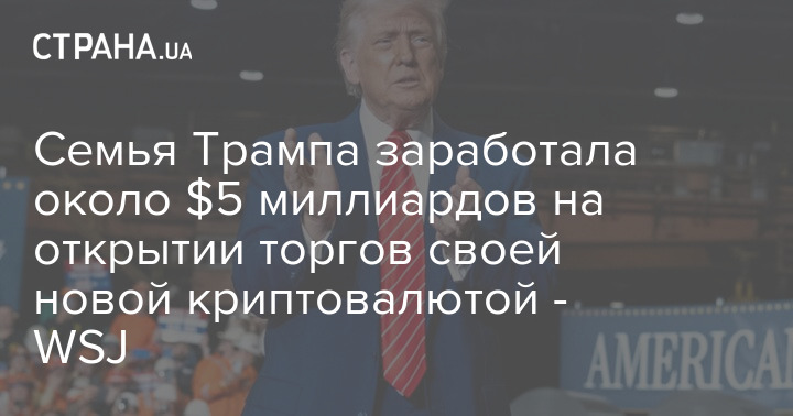 Учора сім'я президента США Дональда Трампа заробила близько п'яти мільярдів доларів на відкритті торгів своєю новою цифровою валютою WLFI. Ймовірно, це був найбільший фінансовий успіх сім'ї президента з моменту його інавгурації.