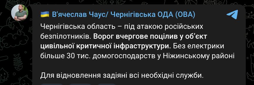 8.24 Удар по об'єкту інфраструктури був у Ніжинському районі Чернігівської області.