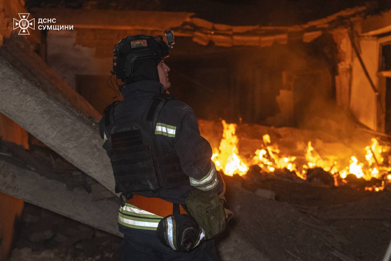 8.00 Вночі росіяни атакували безпілотниками навчальний заклад у Сумах. Значних пошкоджень та часткових руйнувань отримали будівлі закладу, в одному з яких виникла пожежа.