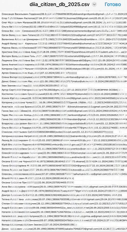 В Україні стався масштабний витік персональних даних на 20 мільйонів людей. Файл під назвою "diia_users_db_2025" (з натяком, що витік стався з "Дії") пропонується в Мережі за гроші.