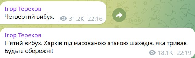 22.12 Вибух у Харкові, повідомив мер Терехов.