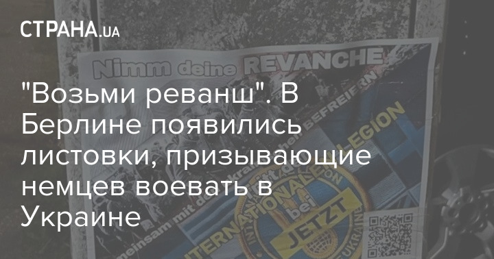 Листівки звуть німців приєднатися до міжнародного легіону, що воює у лавах ЗСУ. На них написане гасло "Візьми реванш". Поруч із ним вміщено архівну чорно-білу фотографію німецьких військовополонених часів Другої світової війни.