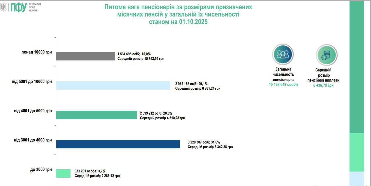 За інформацією, ще 29% мають пенсію від 5 до 10 тисяч гривень, а 15% – понад 10 тисяч.