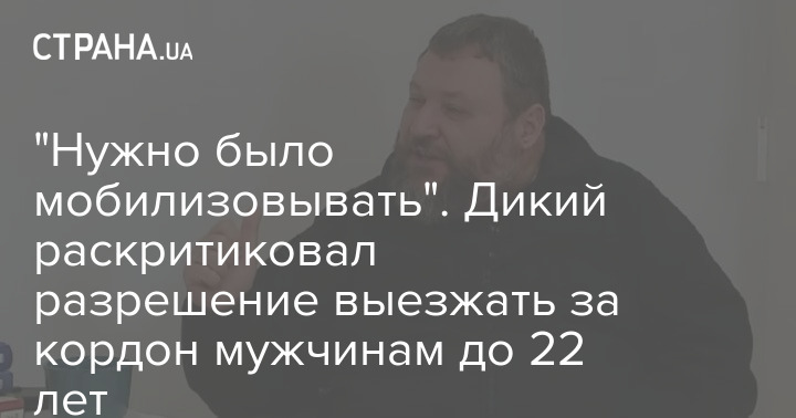 "На жаль, ми виховали таке покоління 18-24, яке одразу поїхало, коли їм дозволили. Як з'явилася дебільна, закінчена постанова уряду про відкриття кордонів для молоді до 22 років, у перший місяць поїхало 10 тисяч. Вікову категорію 18-24 потрібно було мобілізувати і в жодному разі не дозволяти їм виїзд", - сказав Дикий.