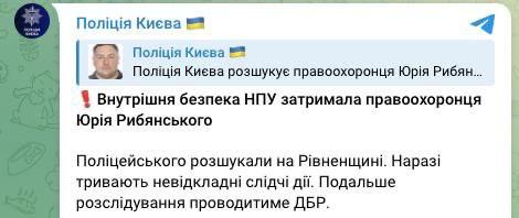 За годину правоохоронці розповіли, що зниклого поліцейського вже затримали на Рівненщині.