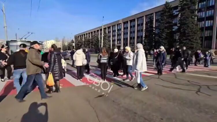 У Кривому Розі точаться протести проти відключень світла. Люди зібралися на мітинг перед міськрадою та перекривають рух на дорогах.