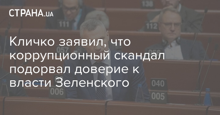 Мер Києва Віталій Кличко заявив, що корупційний скандал підірвав довіру до влади Володимира Зеленського як в Україні, так і міжнародними партнерами.