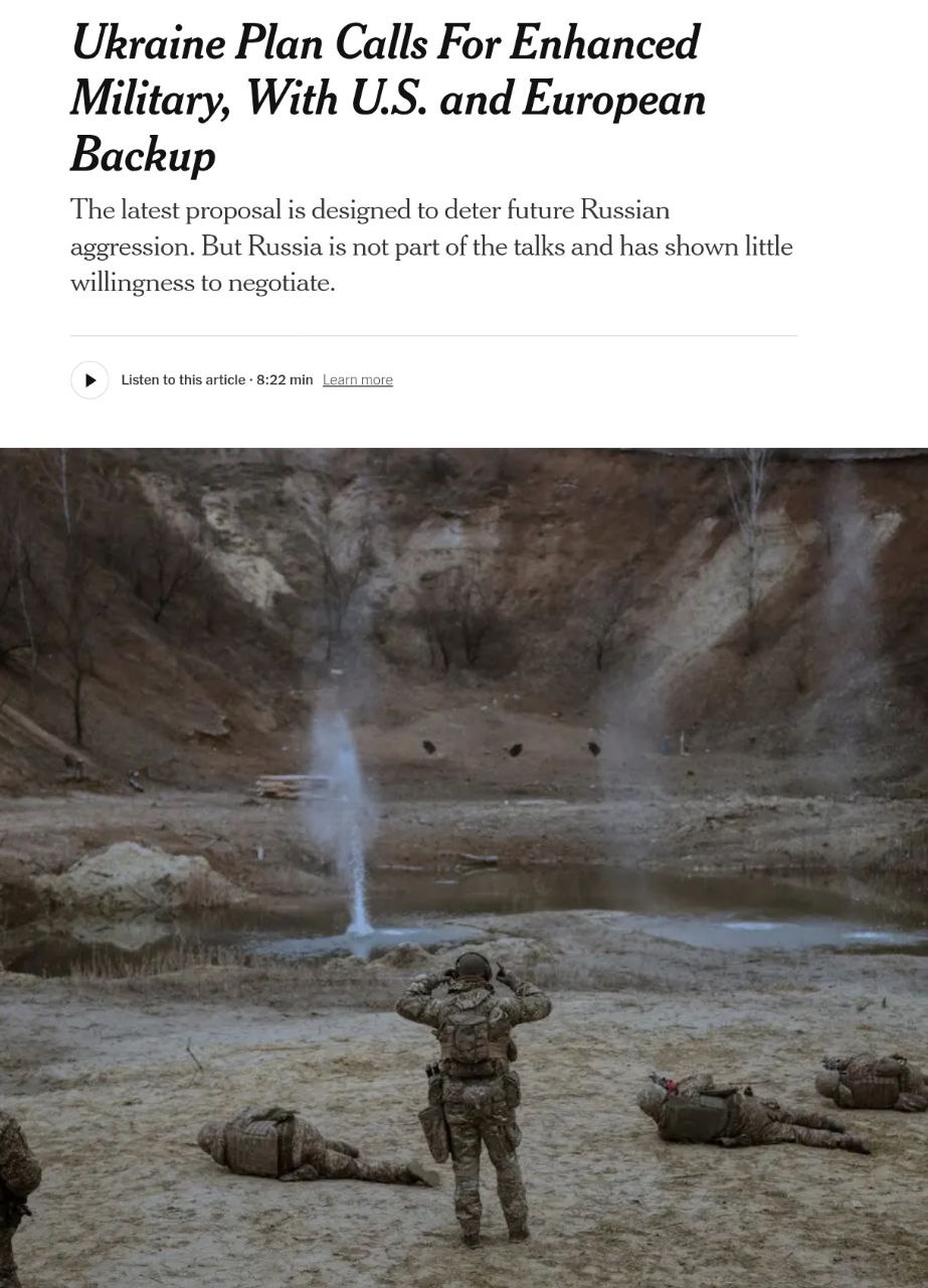Ще один елемент домовленостей, за версією NYT – збереження великої української армії. У документах закладено орієнтир на армію мирного часу чисельністю близько 800 тисяч осіб із постійною підтримкою у озброєнні та підготовці. За словами джерел, перелік необхідного озброєння та допомоги прописаний досить конкретно.