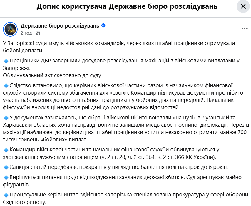 ГБР викрило махінації військових командирів. Фото: Facebook