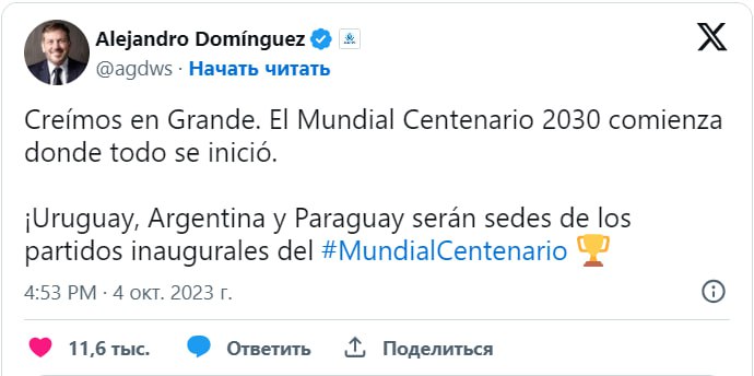 Про це повідомив голова американської конфедерації футболу (КОНМЕБОЛ) Алехандро Домінгес у соцмережі Х.