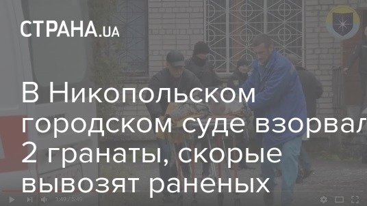 В городском суде Никополя Днепропетровской области во время заседания прогремел взрыв гранаты. Идет эвакуация людей, скорые вывозят раненых.