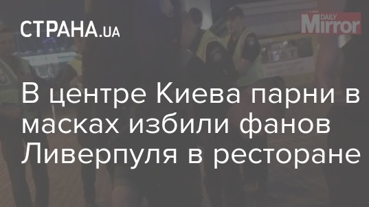 В сети появилось видео как группа из 20 человек в масках и банданах с черепами вечером в четверг устроили драку с двумя болельщиками "Ливерпуля" в Киеве.