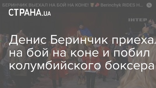 Отметим, что еще перед началом боя Беринчик отметился, выехав на ринг на коне, в красных шароварах, завернувшись в украинский национальный флаг, и под казацкий марш.