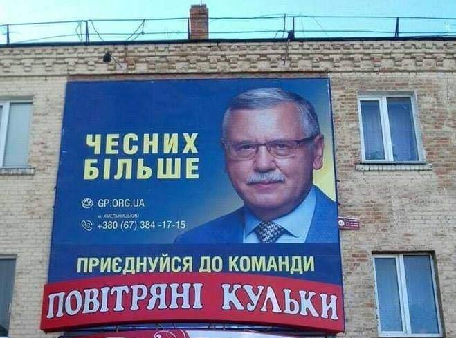 "Борды Гриценко будут выполнены в сине-желтых тонах со слоганом:"Честных больше", - сообщается в статье.
